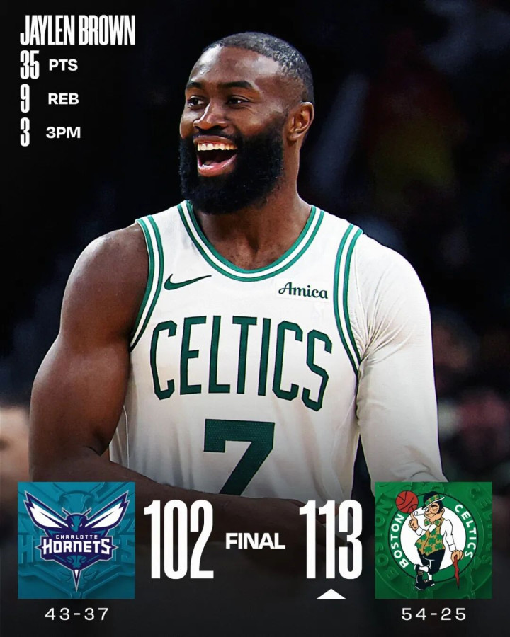 重点在于,在布朗带领下,原本根本不被看好的凯尔特人打出了意料之外的惊喜表现,在赢下黄蜂之后,凯尔特人目前战绩54胜25负,已经锁定东部第二。