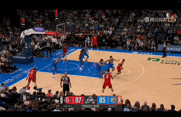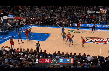 揭幕战首场,火箭与卫冕冠军雷霆鏖战双加时,最终以1分之差输掉比赛。