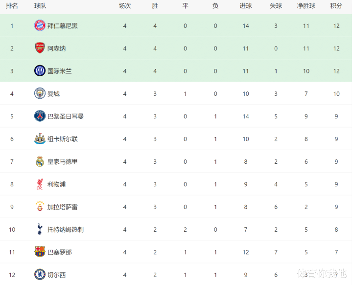截至目前,欧冠前4轮已经全部踢完,英超整体表现非常强势。在积分榜上,阿森纳、曼城、纽卡斯尔和利物浦4支球队位居前八,此外热刺排名第10,切尔西位居第12,这2队和前八球队的差距并不大。本赛季,英超6队出战欧冠,随时可能全部出线。