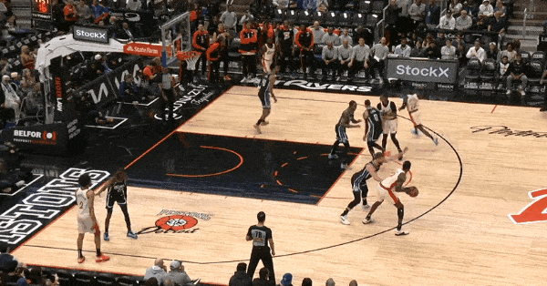 不过杜伦立即转身,和CC完成一次“DHO”(手递手),CC接手递手突破杀向内线,面对小萨护框挑篮打进。