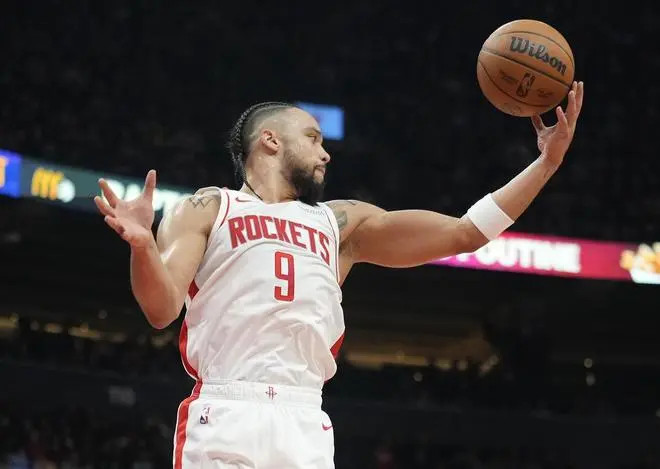 火箭队休赛期时用狄龙·布鲁克斯、杰伦·格林、2025年的首轮10号签外加4个次轮签,从太阳队换来了杜兰特。现在来看,火箭队提升了外线火力和关键时刻的得分能力,而两位强硬的球员加盟太阳队之后,也让这支球队的整体精神气质有了巨大的提升。29岁的狄龙·布鲁克斯现在已经是联盟当中进步最快的小前锋之一了。