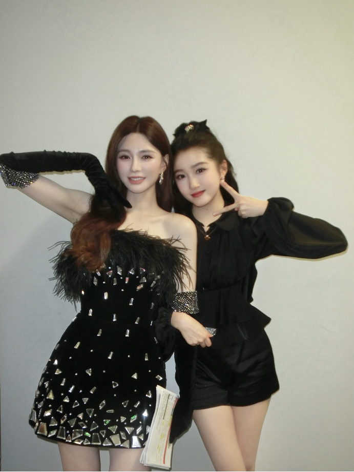 作为照片的发布者,沈梦辰则展现出活泼灵动的一面。她或是俏皮比心,或是亲密地搭着同伴肩膀,俨然是现场的气氛担当。